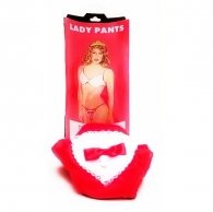 Χιουμοριστικό γυναικείο στρινγκ σε κόκκινο-άσπρο χρώμα και με σχέδιο σερβιτόρας. Είναι one size.