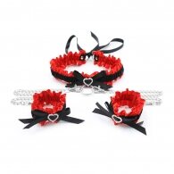 Bondage Set Handcuffs & Collar With Red Bar