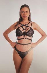 Harness Bra, Piele Ecologica, Negru, S-L, JGF Lingerie