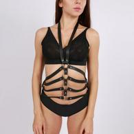 Sistem Harness Leather Goddess, Piele Ecologica, Negru, S-L