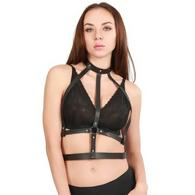 Harness Cage Bra, Piele Ecologica, Negru, S-L