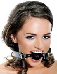 BDSM Δερμάτινο φίμωτρο με ασημένια μπάλα.