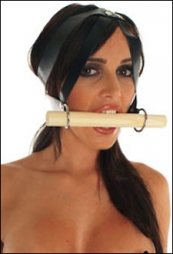 BDSM Δερμάτινο φίμωτρο με λουστραρισμένο ξύλο μήκους 20 cm.
