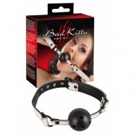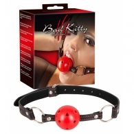 Bad Kitty red silicone ball gag with black imitation leather straps.