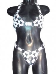 Γυναικείο σετ που περιλαμβάνει ένα σουτιέν και ένα κιλοτάκι. Είναι από δέρμα και υλικά άριστης ποιότητος και αντοχής. Ενωμένοι μεταλλικοί χαλκάδες με άσπρο δέρμα έτσι ώστε να δίνουν μια λάμψη στο σώμα σας. Δώστε νέες κατευθύνσεις, νέες διαδρομές και νέα κίνητρα στα ερωτικά παιχνίδια σας.