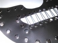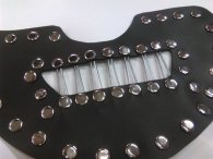 Δερμάτινο φίμωτρο ''prison-break'' με μεταλλικές ράβδους στο στόμα σαν φυλακή. Όλη η δερμάτινη επιφάνεια είναι διακοσμημένη με ασημένια τρουκς.