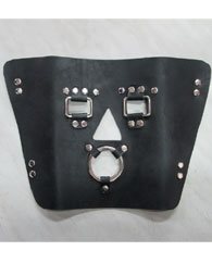 Δερμάτινη μάσκα ολικής κάλυψης προσώπου με άνοιγμα με τετραγωνικούς μεταλλικούς χαλκάδες στα μάτια, με στρόγγυλο μεταλλικό χαλκά στο στόμα και με άνοιγμα στην μύτη. Διαθέτει δυο ρυθμιζόμενα λουριά για πιάσιμο πίσω από το κεφάλι.