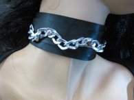 Περιλαίμιο από δέρμα και υλικά άριστης ποιότητος και αντοχής. Είναι με διπλό δέρμα φάρδους 3 cm και 5 cm και με ελαφριά διακοσμητική φαρδιά αλυσίδα .