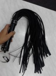 Μεγάλο δερμάτινο μαστίγιο και πολύ πλούσιο χάρης στις λωρίδες. Έχει λαβή μήκους 20 cm με μεγάλο χαλκά στην αρχή του για τον καρπό και με διάμετρο 9 cm. Οι λωρίδες έχουν συνολικό μήκος 55 cm και με συνολικό μήκος 75 cm. Ένα πολύ γεμάτο και εντυπωσιακό μαστίγιο για ανθρώπους που δεν κάνουν εκπτώσεις στα ερωτικά παιχνίδια τους.