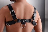 Ανδρικά αξεσουάρ από δέρμα και άλικα άριστης ποιότητος και αντοχής. Ανδρικό αξεσουάρ στήθους με λουριά φάρδους 4cm και ανάλογους χοντρούς κρίκους στη διάμετρο. Δώστε μια δυναμική ομορφιά στο γυμνό σας κορμί φορώντας αξεσουάρ που μπορεί να σας οδηγήσουν σε νέες ερωτικές διαδρομές.