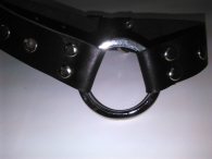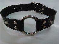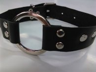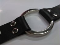 Μαλακό δερμάτινο φίμωτρο με κρίκο διαμέτρου 4 cm που σφίγγει με δερμάτινο λουράκι των 2.5 cm.