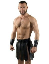 Ανδρική φούστα σκληρής οπτικής, ''Σπάρτακος''. Είναι από δέρμα και υλικά άριστης ποιότητος και αντοχής. Διακοσμημένη στη ζώνη με ασημένια τρουκς και πολλές φαρδιές λωρίδες στη φούστα με μυτερή κατάληξη. Είναι προσαρμοζόμενη και ταιριάζει σε όλα σχεδόν τα σώματα. Δώστε μια διαφορετικότητα στην εμφάνισή σας ταράζοντας τα συνηθισμένα συμβάντα.