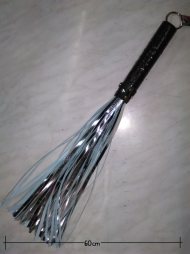 Ασημένιο δερμάτινο μαστίγιο συνολικού μήκους 50 cm, με λαβή 15 cm και με μεταλλικό χαλκά στην αρχή του. Είναι κατασκευασμένο από ασημένιο δέρμα για πολύ ιδιαίτερες και παιχνιδιάρικες ερωτικές στιγμές.