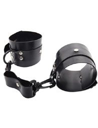 Δερμάτινες χειροπέδες που είναι ανεξάρτητες-αποσπώμενες, με διπλό δέρμα φάρδους 6 cm και 2.5 cm και με κρίκο η καθεμιά. Διαθέτει έξτρα λουράκι με πλαστικούς συνδετικούς γάντζους στις άκρες για να συνδέονται και να δένονται οι χειροπέδες. Ελαφρύ και διακριτικό δέσιμο.