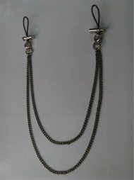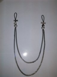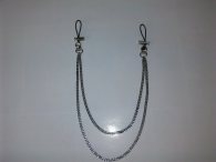 BDSM Σφιγκτήρες θηλών που διακοσμούνται με αλυσίδες. Διακοσμούνται με διπλή αλυσίδα διαφορετικού μεγέθους η καθεμιά και έχουν ρυθμιστή για το σφίξιμο στη θηλή.