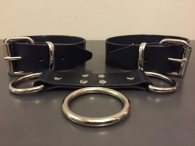 Χειροπέδες από δέρμα και υλικά άριστης ποιότητος και αντοχής. Έχουν φάρδος 3 cm, είναι ανεξάρτητες-αποσπώμενες και ενώνονται με δυο τρόπους. Μπορούν να ενωθούν με ένα λουράκι μήκους 10 cm που έχει δυο μεταλλικούς κρίκους στις καταλήξεις του. Στους κρίκους μπαίνουν τα λουράκια για τις χειροπέδες για να έχουν μεγαλύτερη απόσταση. Επίσης μπορούν να ενωθούν και με έναν μεγάλο μεταλλικό κρίκο για πιο κοντά και πιο δυναμικά. Μπορείτε να τις χρησιμοποιήσετε και για τα πόδια.