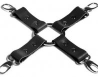 Δερμάτινος ενωτικός σταυρός. Αποτελείται από έναν κεντρικό μεταλλικό κρίκο με 4 λουριά φάρδους των 2,5 cm και από έναν μεταλλικό γάντζο στις άκρες το καθένα. Κάνει τις απλές χειροπέδες σας πολυχρηστικές.