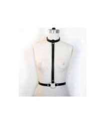 BDSM Γυναικείο δερμάτινο αξεσουάρ που αποτελείται από έναν λαιμοδέτη και από ένα κάθετο λουρί που ενώνεται με τη ζώνη σε ένα κεντρικό μεταλλικό κρίκο. Τα λουριά έχουν φάρδος 2,5 cm και είναι προσαρμοζόμενα.