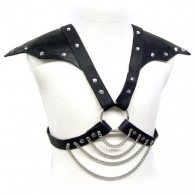 BDSM Δερμάτινο ανδρικό μπούστο. Τα λουριά έχουν φάρδος 3 cm και ενώνονται με έναν μεταλλικό κρίκο. Στα λουριά κάτω από το στήθος υπάρχουν 4 κρεμαστές διακοσμητικές αλυσίδες. Διαθέτει επωμίδες σε κυματιστά σχέδια. Ένα ιδιαίτερο αξεσουάρ που ομορφαίνει και δίνει δυναμισμό στην εμφάνισή σας!