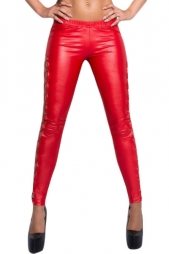 Stylish Lacing Sides Red Wet Look Leggings (SH00079879-3*)