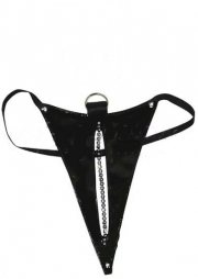 BDSM Δερμάτινο γυναικείο στρινγκ με διακοσμητική αλυσίδα και με ελαστικό πιάσιμο. Έχει ένα κατακόρυφο σκίσιμο που το γεμίζει μια λεπτή διακριτική και παιχνιδιάρα αλυσίδα. Διαθέτει και μεταλλικό κρίκο στην κορυφή για διάφορες τυχόν άλλες ερωτικές διαδρομές...