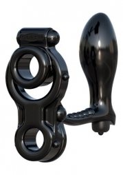 Push your package out to its maximum potential and enjoy a super tight tug on your balls while the vibrating prostate plug makes you cum harder than ever before. The ball stretcher pulls down on your testicles and prevents them from retracting upward, delaying ejaculation and prolonging the fun. One bullet sits on the top ring for direct clitoral stimulation, one sits behind your boys for an incredible ball buzz, and one bullet sits inside the prostate plug for wall-banging backdoor bliss.