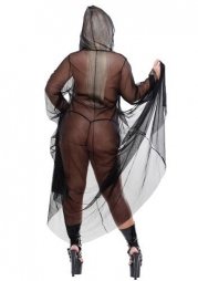 Μαύρη ρόμπα με κουκούλα με ασορτί στριγκάκι για εύσωμες κυρίες που θέλουν να εντυπωσιάσουν άλλα ταυτόχρονα να εξουσιάσουν τα πάντα στο σεξ. Ένα διαφανές σαγηνευτικότατο συνολακι για δυνατές προσωπικότητες.