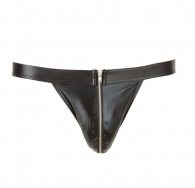 Shiny wetlook pants with high leg. At the front there is a padded zip.