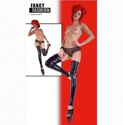 Fancy Fashion black overknees with decorative front lacing and net inserts in the front.