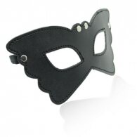 Black fetish leather mask in venetian style, to create thrilling sexual excitement.