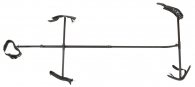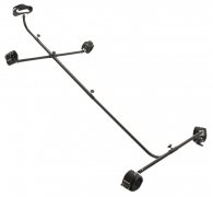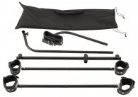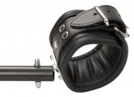 Long vertical pole that can be adjusted from 115 cm to 165 cm and two (2) horizontal poles that are 65 cm each. With an adjustable collar, handcuffs and ankle cuffs that are made out of leather. The slightly padded restraints are smooth on the inside.