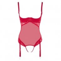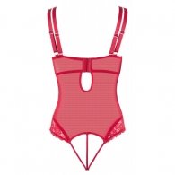 Stunning body that can be worn in four different ways!vRed body made out of soft, stretchy powernet and delicate lace. The lace cups and one pair of straps can be removed, leaving only a shelf bra. All four straps are adjustable. The string part with cotton gusset can also be detached - there only remain stretchy straps over the open crotch. At the front with two adjustable and removable suspender straps.