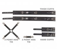 Σετ δεσίματος από δέρμα και υλικά, αρίστης ποιότητος και αντοχής. Αποτελείται από ένα ζευγάρι δέστρες για τους μηρούς και ένα ζευγάρι δέστρες για τα χέρια. Επίσης διαθέτει ενωτικό σταυρό με 4 γάντζους και ένα μικρο ενωτικό αξεσουάρ με διπλό γάντζο. Ένα εξαιρετικό σετ δεσίματος για περισσότερες και διαφορετικές εναλλαγές στα ερωτικά παιχνίδια.
