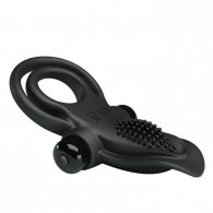 Διπλό δαχτυλίδι πέους και όρχεων με γλώσσα για να μεταφερει την ισχυρή δόνηση στην κλειτορίδα Pretty Love Vibrant Penis Ring. Ενα μεγεθος, Ελαστικότατο, Σιλικονάτο δαχτυλίδι με αυτιά, το οποίο φοριέται άνετα και γρήγορα. Με δόνηση τοσο στο πεος ( μεταφερει την δονηση μεσα στο πρωκτό η κολπο) οπως επισης και στην κλειτοριδα. Διαθετει δυο Δαχτυλους για καλυτερο και πιο σφυχτο κρατημα- ενα για το πεος και ενα για τους ορχεις