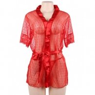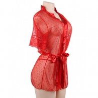 Plus Size Red Mesh Kimono with String (GR00012257*)