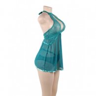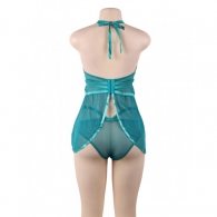 Sensual deep green babydoll with matching thong is a must have piece of your lingerie collection. Soft flyaway mesh chemise with floral lace cups. The Floral lace cups with deep V cutout at the front will highlight the roundness of your breasts.