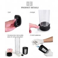 Τρόμπα μεγέθυνσης, επιμήκυνσης και εκπαίδευσης του πέους με ηλεκτρική εκκένωσεις αέρος με τό πάτημα ενός κουμπιού. Ιδανική αερο-τρομπα για άντρες με πεός από 12 μέχρι και 17 εκατοστά. Απλής κατασκευής, ηλεκτρική αντλία, η οποία λαμβάνει 3 ΑΑΑ Αλκαλικές μπαταρίες και η οποία θα κάνει την ζωή σας πιο απλή και ευχάριστα άνετη. Πλήρης έλεγχος, δυο κουμπια, μεγεθυνση χωρίς καμιά δυσκολία. Αυτή η αντλία αέρος έχει ολικό μήκος 22 cm και διάμετρο Ø σωλήνας 6,9 cm. Είναι κατασκευασμένη από υψηλής ποιότητας σιλικόνη και διαφανές σκληρό πλαστικό σωλήνα, υλικά τα οποία καθαρίζουν πολύ εύκολα! Διαθέτει ρίγα μέτρησης. Απλά πιέστε το κουμπί ενεργοποίησης, χαλαρώστε και αφήστε την αντλία να κάνει τα μαγικά της! Για γρήγορη κι άμεση εκκένωση υπάρχει βαλβίδα εξαέρωσης, για μεγαλύτερη ασφάλεια!