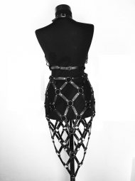 BDSM Γυναικείο σύνολο από δέρμα και από υλικά άριστης ποιότητος και αντοχής. Αποτελείται από ενωμένα λουράκια φάρδους 2 cm σε μεταλλικούς κρίκους. Εντυπωσιακή και μοναδική επιλογή σε μια νυχτερινή έξοδό σας ή χωρίς ρούχα σε ιδιαίτερα ερωτικά παιχνίδια με το σύντροφό σας.