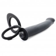 Black Color Silicone Vibrating Dildo with 2 Cock Rings