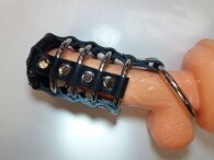 Κλουβί πέους - Cock blocker από δέρμα με υλικά αρίστης ποιότητος και αντοχής. Περιορισμός του πέους με κλειστή ένωση 5 κρίκων και κλειστό στην άκρη. Διαθέτει και 6ο κρίκο 5cm για όρχεις-πέος. Εμποδίζει την ολοκλήρωση της στύσης και φέρνει μια αισθησιακή καταπόνηση. Δοκιμάστε κάτι διαφορετικό από τα συνηθισμένα...