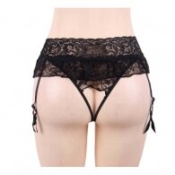 Delicate lace garter belt with 4 suspender straps and attached crotchless string for ladies with bigger curves. Make your outfit even more sexy and be ready for anything in any moment.
