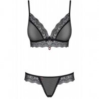 Translucent mesh lingerie set from Obsessive Lingerie line. Black soft mesh with tempting lace details. Beautiful lingerie set adorned with charming beige jewel on the bra.