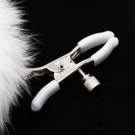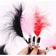 Why would you choose between soft tickling and and pinches? Start the teasing with the feathers over your nipples, then adjust the clamps for the perfect squeeze. Nipple clamps made out of durable metal clips and covered in soft rubber liners. Perfect for beginners and advanced players too.