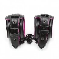 Εξωτερικά Μαύρο δέρμα με Ροζ εσωτερική δερμάτινη επένδυση, να αποτελέι ισως τον πιό σέξι χρωματικό συνδυασμός φετιιχιστικών Μποντάζ δερμάτινων δεσμών περιορισμού των ποδιών στους αστραγάλους. Υψηλής ποιότητας φετιχιστικό bdsm σετ δεσμών περιορισμού των ποδιών στους αστράγαλους NAUGHTY TOYS. Ένα μέγεθος, ρυθμιζόμενα. Κατασκευασμένα με υψηλής ποιότητας PU δέρμα, επενδυμένο εσωτερικά με ειδικό foam έτσι ώστε να επιτυχάνεται ισχυρό δέσιμο μέν αλλα πολύ άνετη, χωρίς να προκαλεί μώλωπες και γδαρσίματα, δέσιμο στους αστραγάλους. Ιδανικό και για τα δύο φυλα.