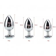 - Smooth metal butt plug with jewelled heart-shaped base for firm, filling sensations