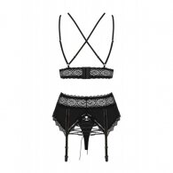 Perfect elegance, stunning design with delicate golden adornments. Get ready bit of romance and lots of pleasure. Your lover will not be able to resist you when ou wear this sensual lingerie set. Sexy bra, matching thong with super sexy garter belt. Garter belt with alluring lacing at the back. Just add your favorite stocking to make your outfit complete.