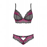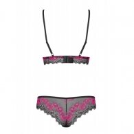 Surprise your loved one with your new sexy look. He will not be able to resist you when you wear this stunning lingerie set. He will know what you have in your mind. Black mesh bra with delicate, soft lace edges and beautiful pink floral design and matching lace panties.