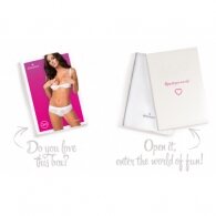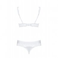 Innocent white lingerie set from Obsessive the perfect lingerie for special night! Miamor set will make you feel absolutely specail. It will emphasize your breasts and buttocks. Beautiful white padded shelf bra with underwired cups and lace shoulder straps. Set includes a matching lace panties that will make your look even more dramatic, irresistible.