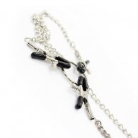Ερέθισε και διέγειρε τα 2 πιο ευαίσθητα σημεία του γυναικείου σώματος με αυτό το ποιοτικό εργαλείο το οποίο εγγυάται μια οργασμική εμπειρία. Αυτές οι 2 σε 1 σφικτήρες θηλών είναι κατασκευασμένες από ιατρικό αλουμίνιο και παρέχουν ταυτόχρονη διέγερση των θηλών καθώς και της κλειτορίδας. Είναι ρυθμιζόμενοι μέσω της μικρής βαλβίδας στο πλάι έτσι ώστε να μπορείς να διαλέξεις πόσο σφικτούς τους θέλεις. Απλά εφάρμοσε τους 2 σφικτήρες οι οποίοι είναι συνδεδεμένοι σε ελαφρώς κοντότερες αλυσίδες, στις θηλές. Στην συνέχεια εφάρμοσε τον σφικτήρα ο οποίος είναι συνδεδεμένος πάνω στην μακρύτερη αλυσίδα, πάνω στην κλειτορίδα και αφέσου στις πιο οργασμικές αισθήσεις που έχεις νιώσει ποτέ.