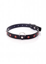 Περιλαίμιο με κόκκινους κρυστάλλους. Κατασκευασμένο από ανθεκτικό οικολογικό δέρμα, απαλό στην αφή, καθιστώντας το άνετο στη χρήση. Το κολάρο είναι ρυθμιζόμενο από 36 έως 42 cm. Για πιο ελεγχόμενο παιχνίδι, μπορείτε να χρησιμοποιήσετε το δακτύλιο Ο για να στερεώσετε μια αλυσίδα (δεν περιλαμβάνεται). Αυτό δημιουργεί ατελείωτες δυνατότητες και επιτρέπει μια δημιουργική και προσωπική εμπειρία δουλείας.